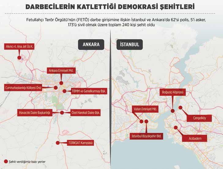16 Temmuz Cumartesi / 09:44 FETÖ’nün darbe girişimi nedeniyle çıkan olaylarda Türkiye genelinde, 90 kişinin şehit olduğu, bin 154 kişinin yaralandığı bildirildi.