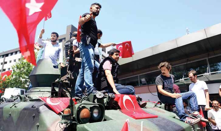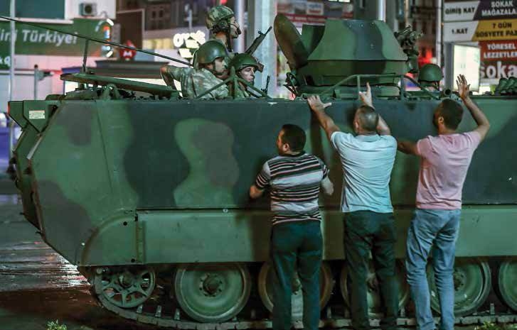 Ankara Kızılay Meydanı’nda askeri kalkışmayı protesto etmek için toplanan vatandaşlar ellerinde bayraklarla, Kızılay’dan geçiş yapan tanklara cesaretle karşı koydu