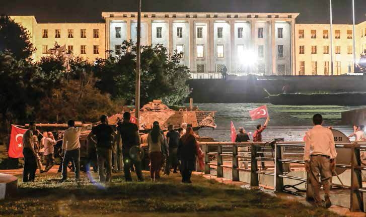 Ankara Kızılay istikametinden gelip Genelkurmay Başkanlığı önüne doğru giden tanklar TBMM önünde, ellerindeki bayraklarla demokrasiye sahip çıkan halkın direnişi ile karşılaştı