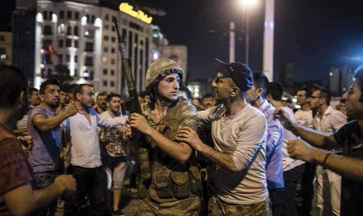 İstanbul Taksim Meydanı’nda toplanan vatandaşlar İstanbul ve Ankara’daki “askeri kalkışmaya” tepki gösterdi Taksim Anıtı’nın önünde bekleyen askerler gözaltına alındı