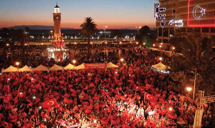 İzmir’de Konak Meydanı’nda toplanan İzmirli vatandaşların Fetullahçı Terör Örgütü’nün (FETÖ) darbe girişimini protestosu