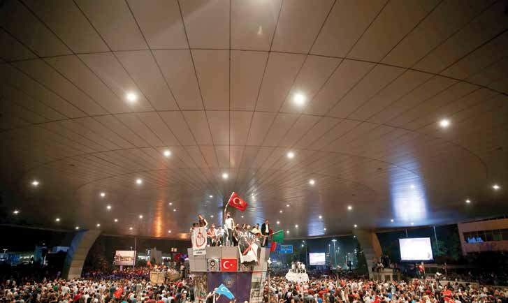 Onbinlerce vatandaş FETÖ’nün darbe girişimine tepki göstermek için İstanbul Atatürk Havalimanı’na geldi