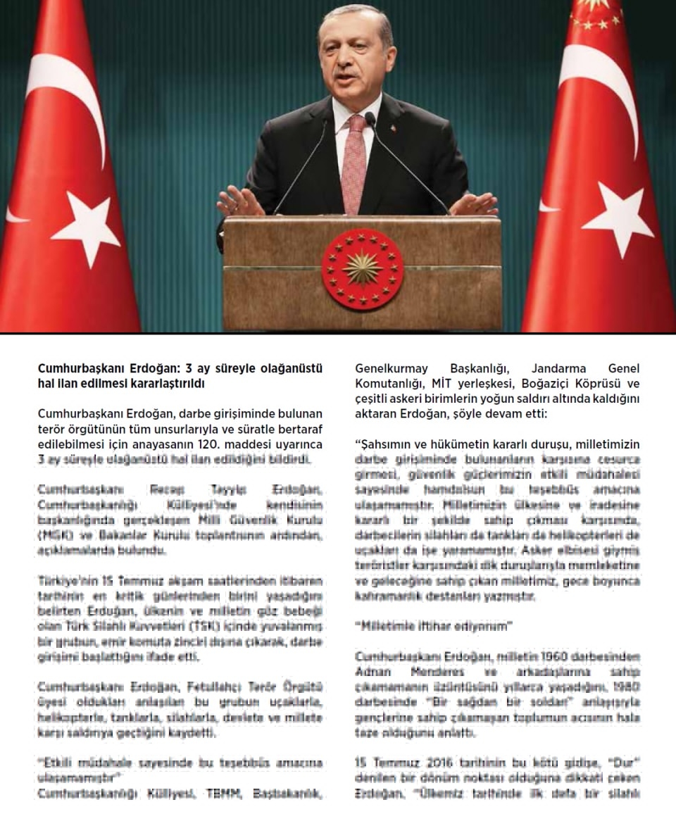 16 Temmuz Cumartesi / 04:00 Ankara Cumhuriyet Başsavcılığı, darbe girişiminde bulunan terör örgütü FETÖ/ PDY irtibatlı yargı görevlileri ve sözde “Yurtta Sulh Komitesi” mensubu general, amiral, subay, astsubay, er ve erbaşlar hakkında gözaltı kararı verdi.