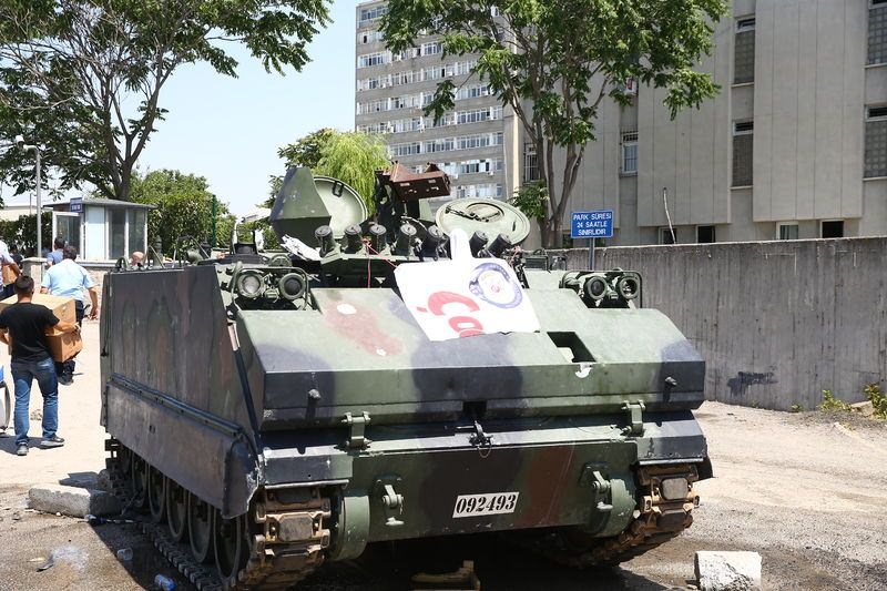 Terör Örgütü (FETÖ) mensuplarının darbe girişimi sırasında İstanbul Vatan Caddesi’ne getirilen tanklar polis ekipleri tarafından İstanbul Emniyet Müdürlüğü bahçesine sokularak kontrol altına alındı