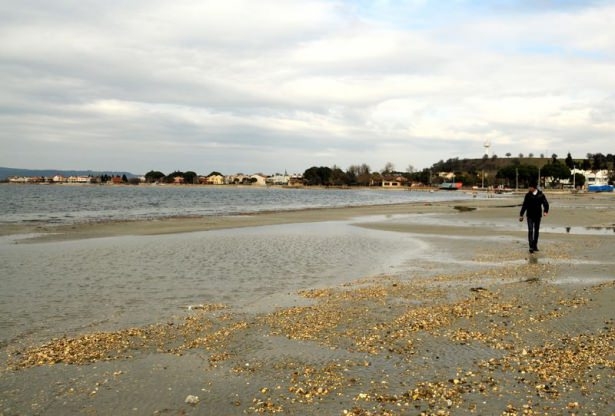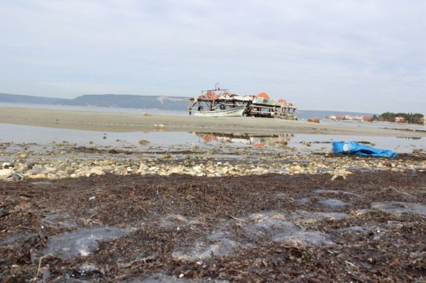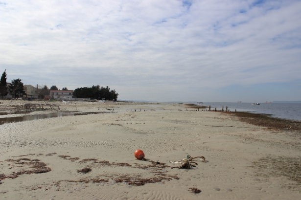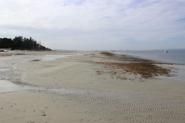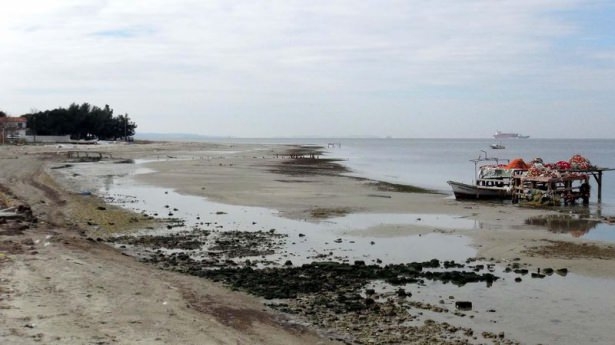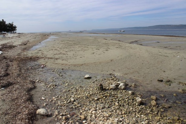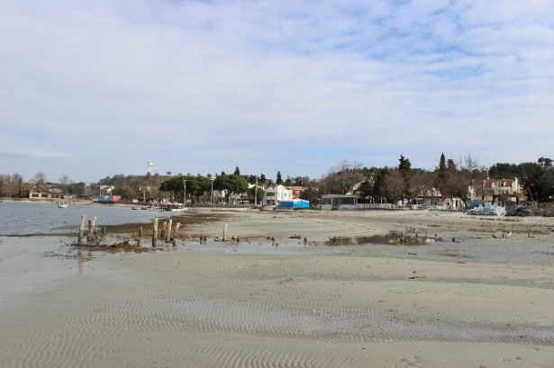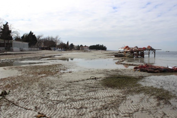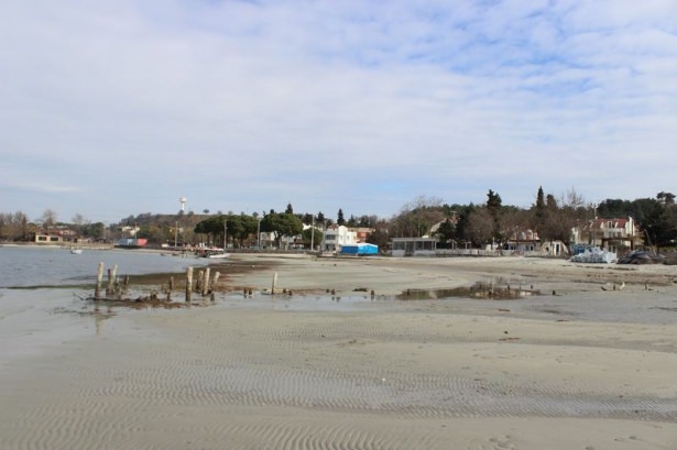 Deniz suyunun çekilmesi üzerine bölgede kum adacıkları ortaya çıktı. Sahilde demirli bazı tekneler sanki karaya çekilmişçesine kumsalın üzerinde kaldı.