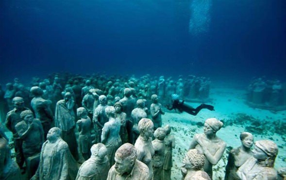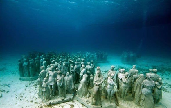 İngiliz sanatçı Jason de Caires Taylor, Meksika’nın doğu kıyısı açıklarında 400 insan heykeli ile yapay canlı organizmaların ürettiği ‘resif' tasarladı.