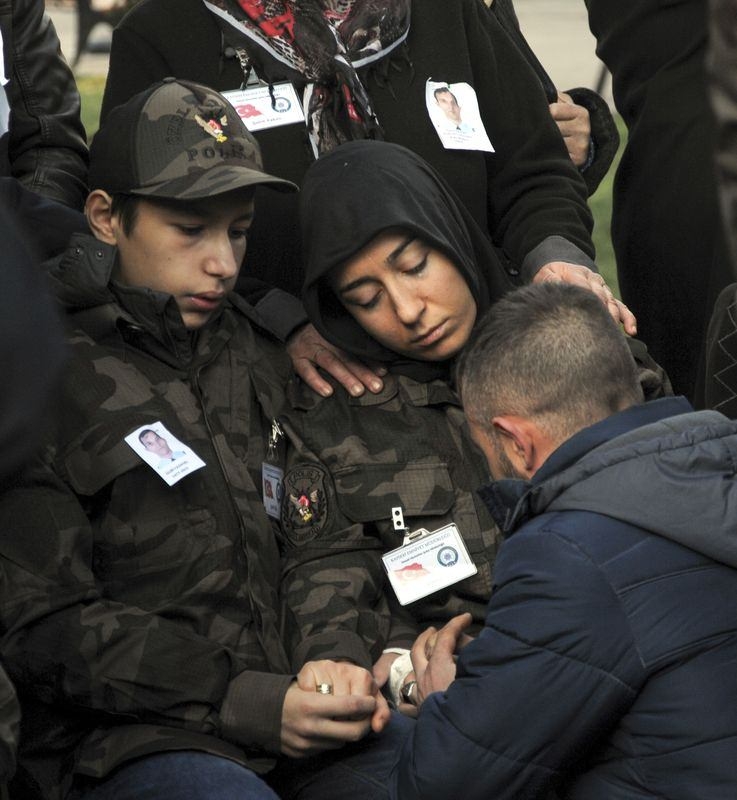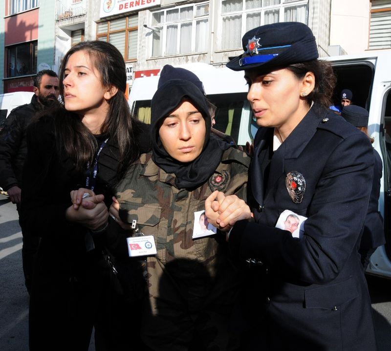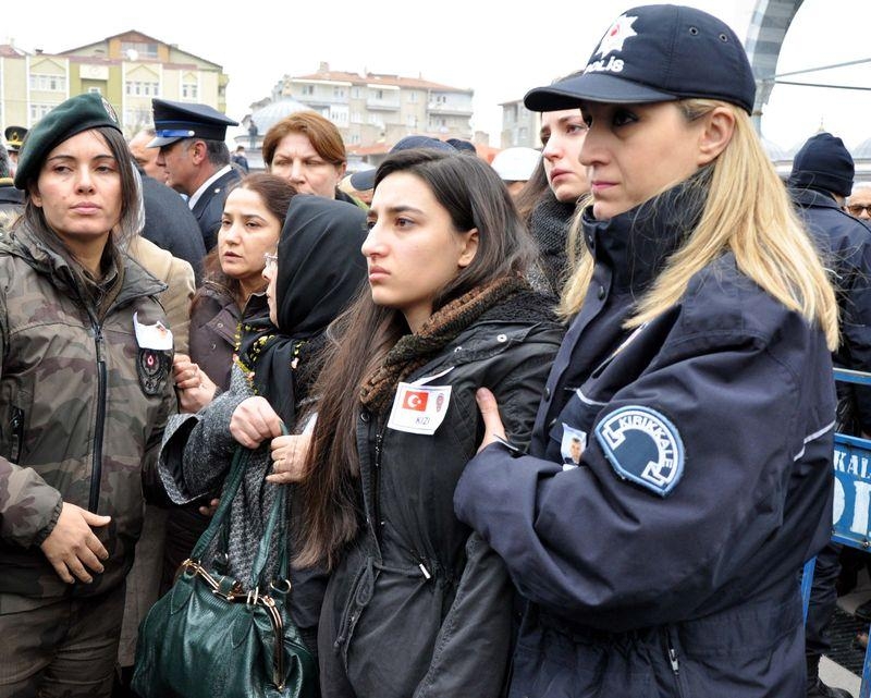 Özel Harekat montuyla babaya veda! Cenaze törende bir kadın Özel Hareket polisi üzerindeki montu çıkararak üşümemesi için şehit polis Kabukçu'nun kızına giydirdi.