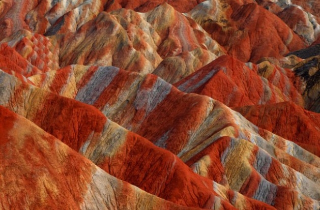 Usta bir ressamın ellerinden çıkmış yağlı boya tabloları andıran bu kareler aslında üzerinde ufak bir oynama bile olmayan fotoğraflar. Çin’in Gansu eyaletindeki Niciaying kasabasının Nantaizi köyünde bulunan bu tepelerin her şeyi doğal.