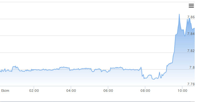 Bugün güne yükselişle başlayan dolar 7,86'ya kadar çıktı.