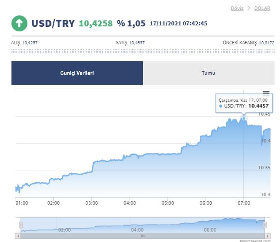 Dün geceye 10,4141 ile rekoru ile damga vuran dolar bu sabah yüzde 1'in üzerindeki primle 10,4475 rekoru ile başlıyor. Tabi bu şimdilik.