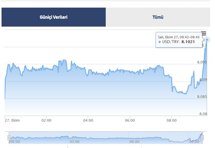 Dün 8 lirayı aştıktan sonra bu sabah da yükselişte olan dolar/TL 8,10 ile tarihi zirveyi yeniledi.
