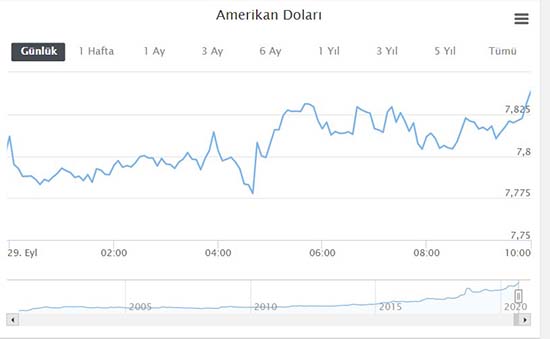 Pazartesi günü 7,83 lira seviyesini test eden dolar/TL, 29 Eylül 2020 sabahında 7,80 lira bandının üzerinde başladı.