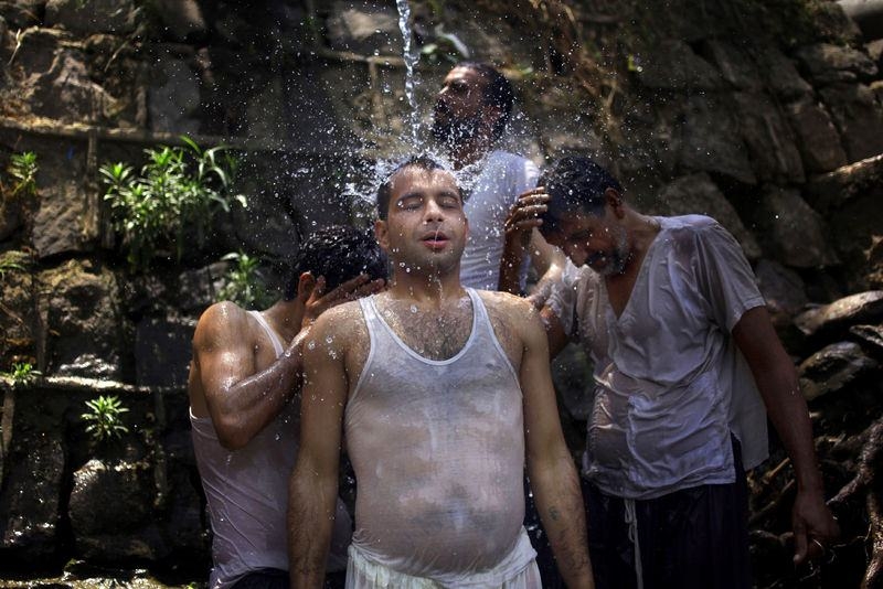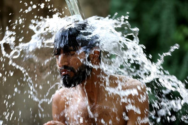 Pakistan'ın başkenti İslamabad'da, Ramazan ayında da etkili olan aşırı sıcaklardan bunalan Pakistanlılar, serinlemeye çalıştı.