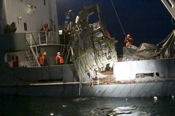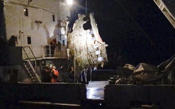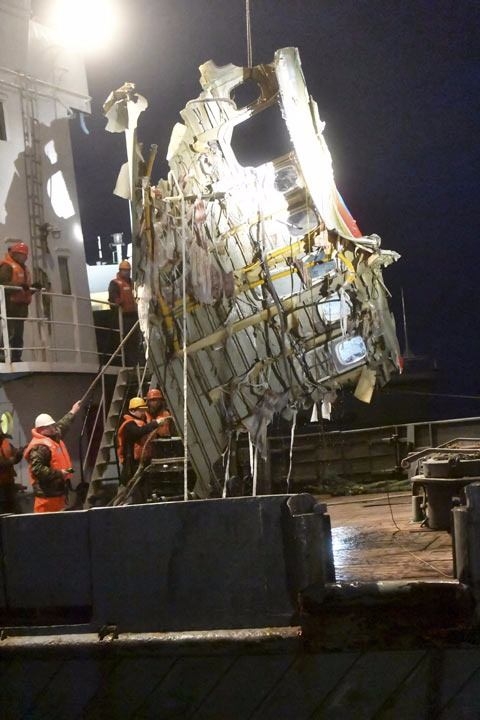 Gece saatlerinde sudan çıkarılan uçağın gövdesinin fotoğrafları, Rusya Acil Durumlar Bakanlığı tarafından dünya ile paylaşıldı.