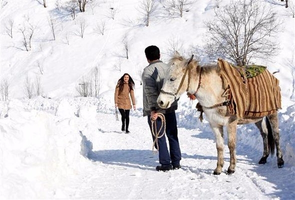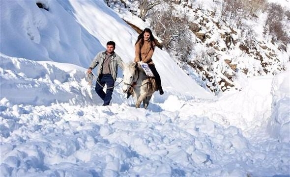 İlk günlerde minibüsle okula gidip gelen Duygu öğretmen, kar yağışıyla birlikte zorlu bir döneme girdi. İlçeye 13 kilometre uzaklıktaki mahallenin yolu kardan ulaşıma kapanınca, Duygu öğretmen yaklaşık 2 kilometrelik yolu yürümek zorunda kaldı. Adım atmanın bile zor olduğu yolda yürümekte güçlük çeken öğretmene mahalle halkı bir katır ve bir görevli tahsis etti. Servisten indikten sonra katıra binerek karlara bata- çıka, dağları tepeleri buz gibi havada aşan Duygu öğretmen, okula yaklaşık 40 dakikada ulaşabiliyor.