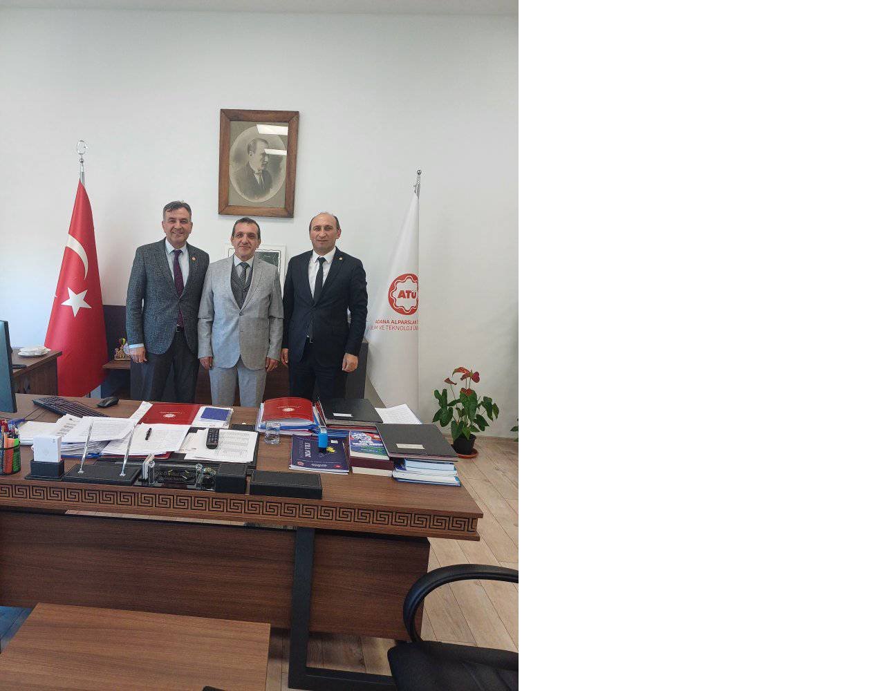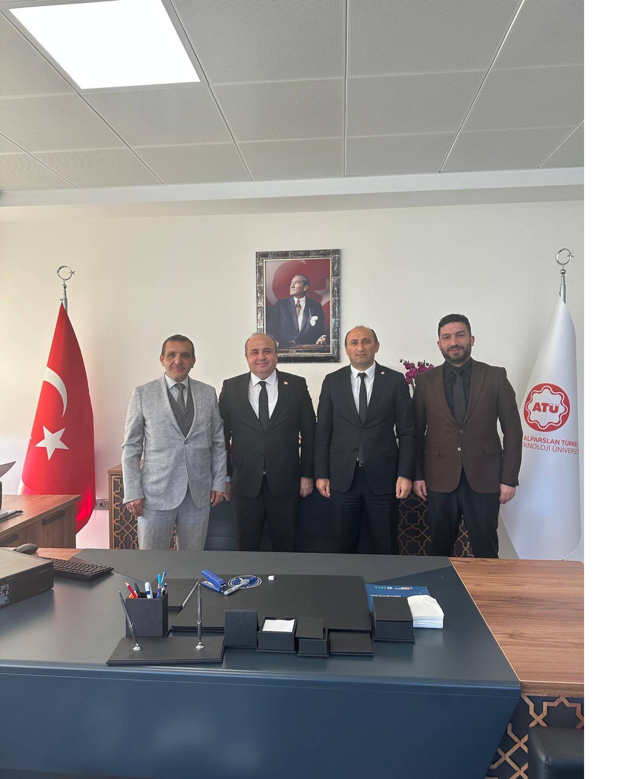 "Genel Başkanımız Sayın Ertekin ENGİN ve Genel Başkan Danışmanı Namık KILIÇ Alparslan Türkeş Üniversitesi Rektörü Sayın Prof Dr. Adnan SÖZEN’i ve Genel Sekreter Sayın Prof. Dr. Nihat DÖNGEL’i, İBF Dekanı Sayın Prof. Dr. İhsan KALENDEROĞLU’nu, SKS Başkanı Sayın Hasan YILDIRIM’ ı ziyaret etmişlerdir.