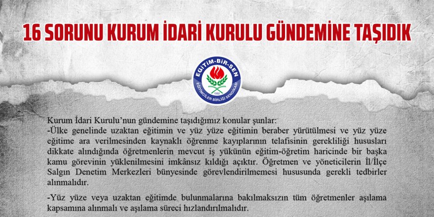 Eğitim-Bir-Sen: MEB sorunların çözümü için irade ortaya koymalıdır