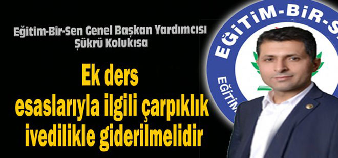 Eğitim-Bir-Sen Genel Başkan Yardımcısı Şükrü Kolukısa, eğitim çalışanlarıyla ilgili sınav ücreti, yetiştirme kursları ve nöbet ücreti iyileştirmelerinin ardından temsil ve yasal sorumluluklarına karşın okul müdürlerinin öğretmenlerden daha az ücret aldığı bir noktaya gelindiğini, bu çarpıklığın ivedilikle giderilmesi gerektiğini söyledi.