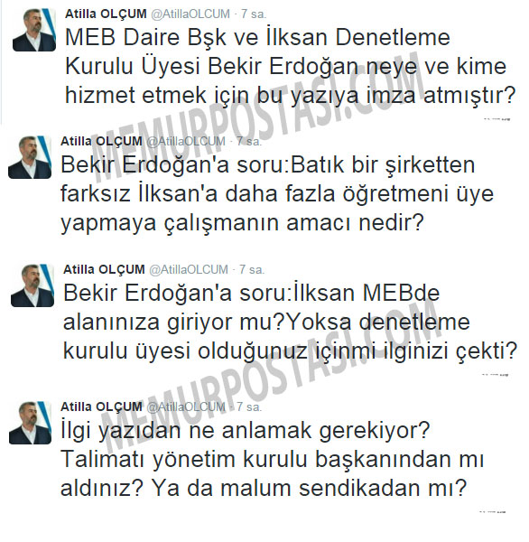Eğitim-Bir-Sen Genel Başkan Yardımcısı Atilla Olçum, sosyal medya hesabından yaptığı paylaşımlarla MEB Daire Başkan Vekili Bekir Erdoğan'a tepki gösterdi.