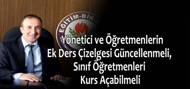 Eğitim Bir Sen Ankara İki Nolu Şube Başkanı Levent KÖSE; MEB Yönetici ve Öğretmenlerinin Ek Ders saatlerine yönelik çizelgesinin güncelliğini yitirdiğini belirtti. Ayrıca ilkokullarda sınıf öğretmenlerinin kurs açabilmesi gerektiği ile ilgili açıklama yap