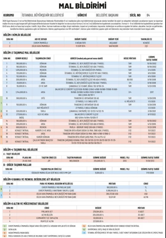 CHP'nin 31 Mart yerel seçimleri için yeniden aday gösterdiği İstanbul Büyükşehir Belediye (İBB) Başkanı Ekrem İmamoğlu, mal varlığı bildiriminde bulundu.