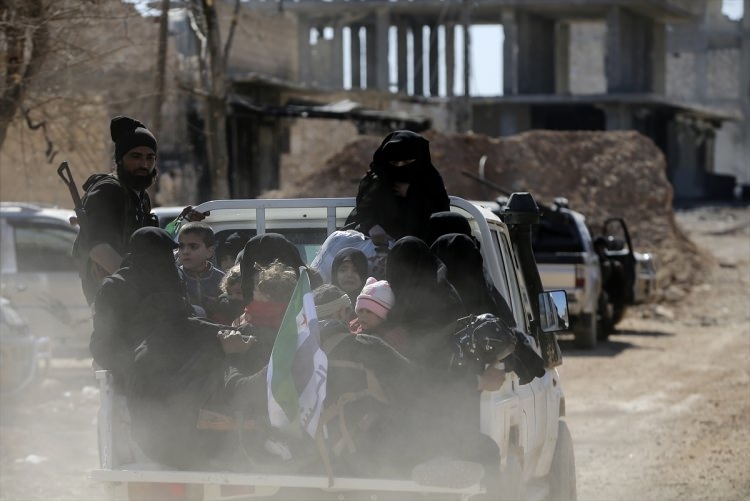 Suriyeli aileler, çocuklarıyla birlikte çatışmaların yaşandığı bölgelerden uzaklaştı.