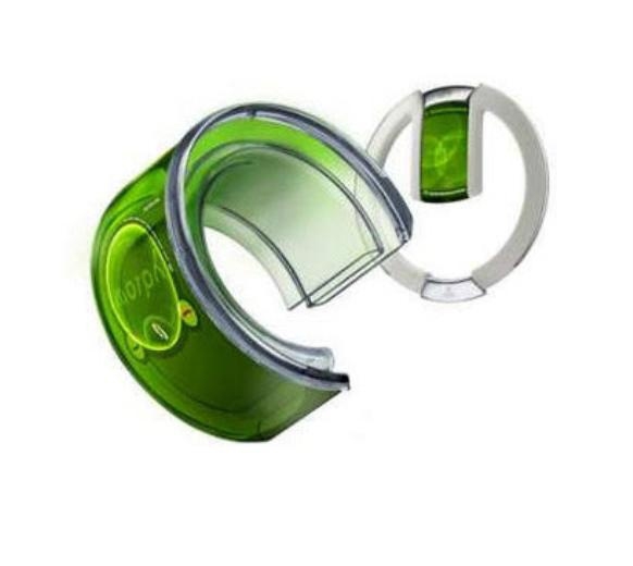 Sunman Kwon tarafından tasarlanan bu bilezik telefon, üzerindeki projeksiyon ve alıcı yarımıyla ekran değil sadece elinizi kullanıyor.