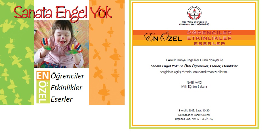 3-Aralık-11 Aralık 2015 tarihleri arasından açık kalacak sergide “En özel öğrenciler, eserler ve etkinlikler” mottosu ile çeşitli engel gruplarından öğrencilere ait eserler sergilenecek.
