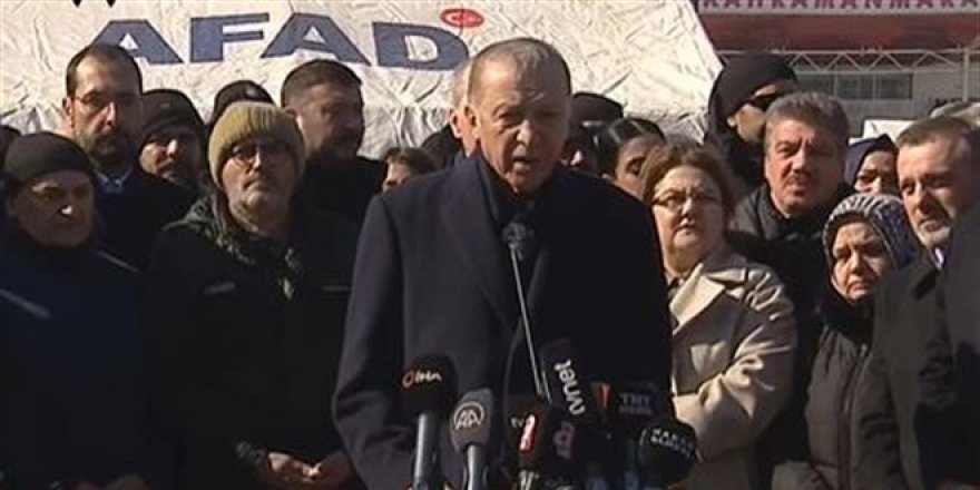 Erdoğan, merkez üssü Kahramanmaraş'ın Pazarcık ve Elbistan ilçeleri olan 7,7 ve 7,6 büyüklüğündeki depremlerin ardından AFAD tarafından Onikişubat Stadyumu'nda kurulan çadır kentte incelemelerde bulunduktan sonra basın mensuplarına açıklama yaptı.