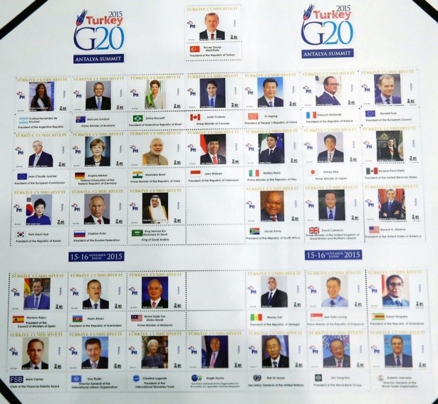 G-20 Zirvesi'ne katılan devlet ve hükümet başkanlarına, PTT tarafından özel olarak basılan pullar hediye edildi.