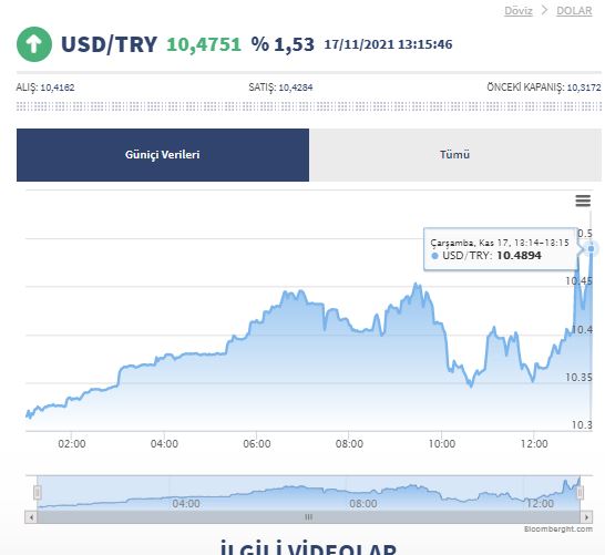 Saat 13:20 itibariyle dolar / tl grafiği: