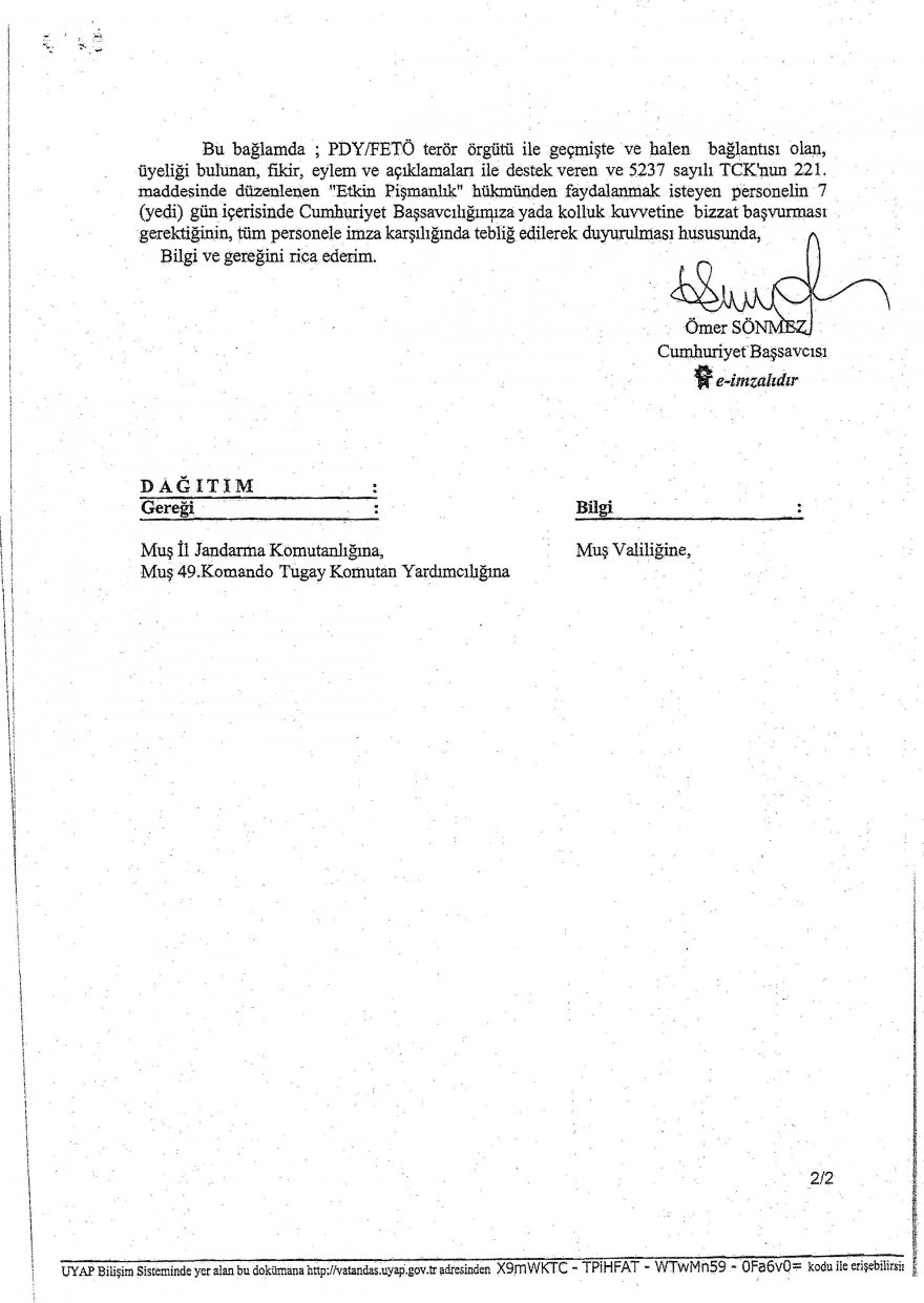 FETÖ Bağlantılı Memurlara Etkinlik Pişmanlık Duyurusu