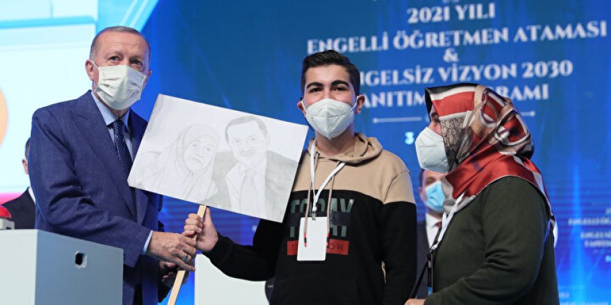 Cumhurbaşkanı Erdoğan, engelli gencin elini öperek karşılık verdi