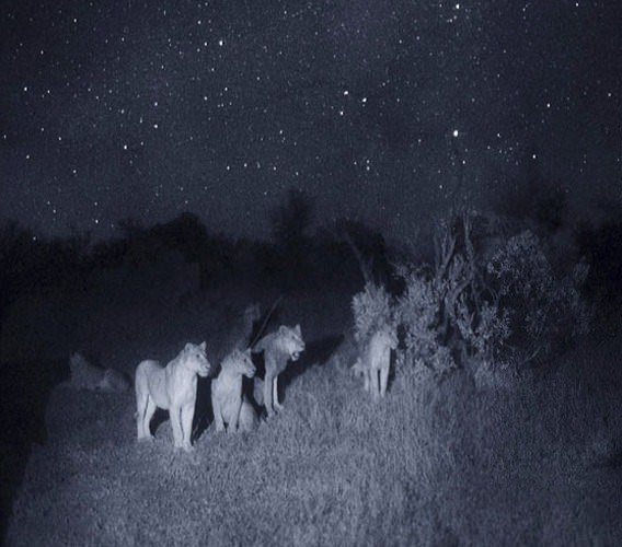 Belgesel çekimi için Kenya'daki Masi Mara'nın çeşitli bölgelerine yerleştirilen yeni nesil starlight kameralar yerleştirildi.