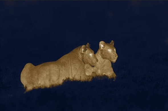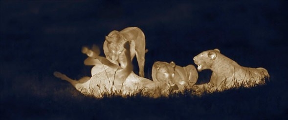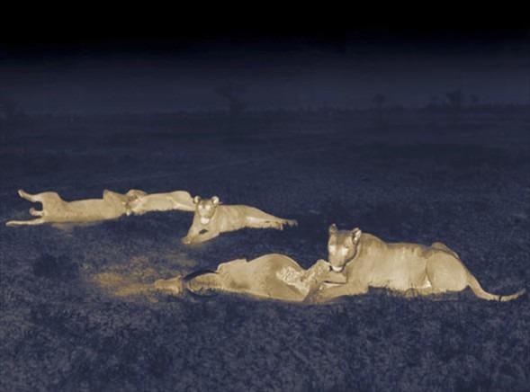 Vücut ısılarına göre görüntü alan bu termal kameralardan elde edilen görüntüler aslanların ormanın kralı olduğu gerçeğini görmek isteyebileceğinizden çok daha açık bir biçimde ortaya koyuyor.