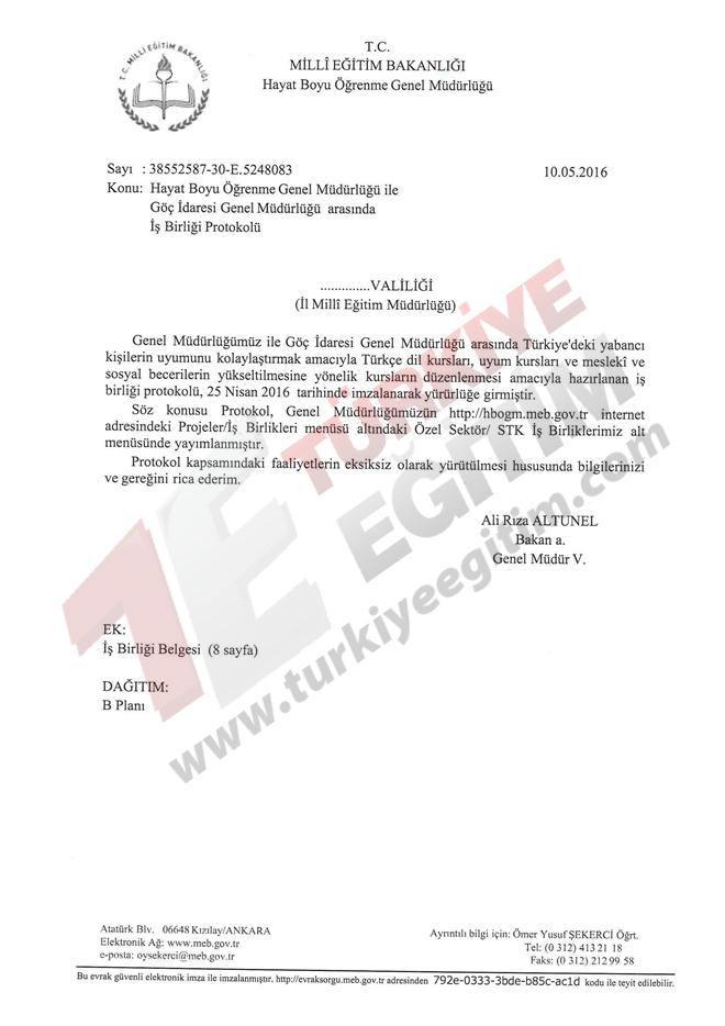 MEB Hayat Boyu Öğrenme Genel Müdürlüğü ile Göç İdaresi Genel Müdürlüğü Arasında İş Birliği Protokolü: