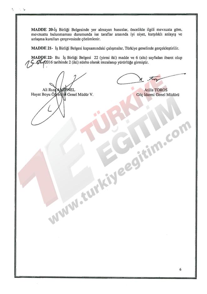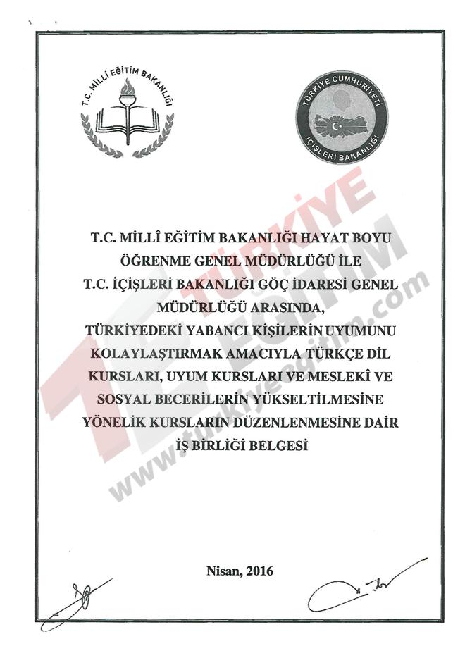 Genel Müdürlüğümüz ile Göç İdaresi Genel Müdürlüğü arasında Türkiye'deki yabancı kişilerin uyumunu kolaylaştırmak amacıyla Türkçe dil kursları, uyum kursları ve meslekî ve sosyal becerilerin yükseltilmesine yönelik kursların düzenlenmesi amacıyla hazırlanan iş birliği protokolü, 25 Nisan 2016 tarihinde imzalanarak yürürlüğe girmiştir.