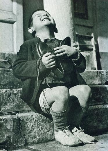 İkinci Dünya Savaşı yıllarında çekilmiş bu karede Avusturyalı küçük çocuk yeni ayakkabılarına kavuşmanın sevincini yaşıyordu.