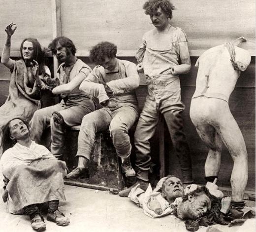 Londra’daki Madam Tussaud Müzesi’nde çıkan yangından zarar gören balmumu heykelleri, 1930