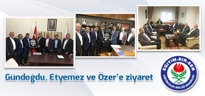 Eğitim-Bir-Sen Genel Yönetim Kurulu, AK Parti Ankara Milletvekili, TBMM İdare Amiri Ahmet Gündoğdu, Konya Milletvekili Halil Etyemez ve SGK Yönetim Kurulu Üyeliği’ne seçilen Eğitim-Bir-Sen eski Genel Başkan Vekili Ahmet Özer’i ziyaret ederek, ‘hayırlı ols
