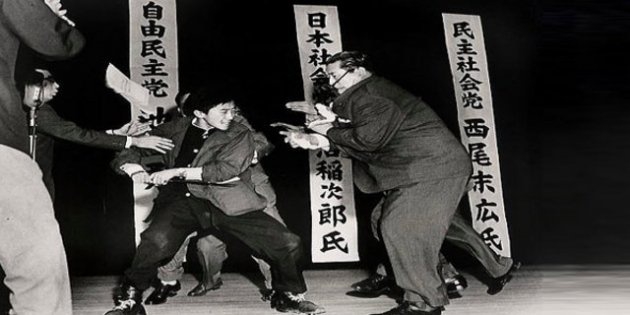 Sağcı öğrenci, Japon Sosyalist Parti lideri Asanuma'yı öldürmeden saliseler önce.