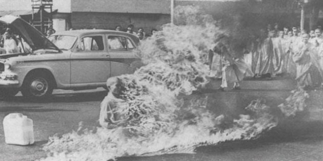 Malcolm Browne'un çektiği fotoğraf. 11 Haziran 1963 günü Vietnamlı bir Durist rahip Thich Quang Duc, Katolik Diem rejiminin baskıcı politikalarına dikkat çekmek için Saigon şehrinin işlek bir kavşağında kendini yakarak öldürdü. Görgü tanıklarının ifadesine göre Duc, iki öğrencisiyle birlikte yolun ortasında durup arabadan usulca inerek yere oturdu ve talebelerinden üzerine benzin döküp kendisini yakmalarını istedi. O an hiç kıpırdamadı, ses çıkarmadı.