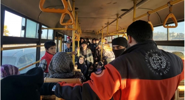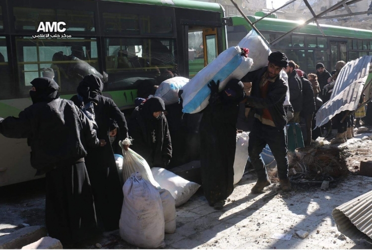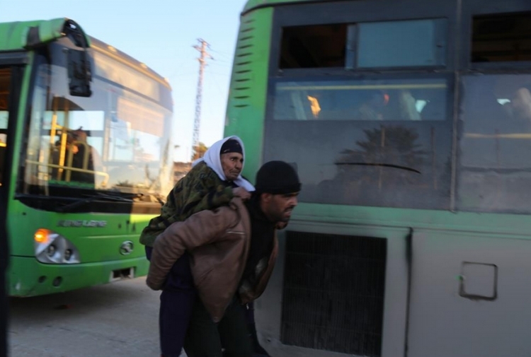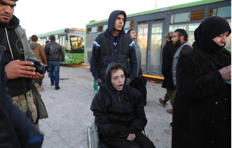 Halep'teki ilk tahliye konvoyundaki 200 yaralı, rejim bölgesine geçip Ramuse semtinde yeşil otobüslere nakledildikten sonra 4 kilometre yol kat etti.