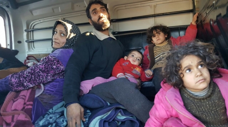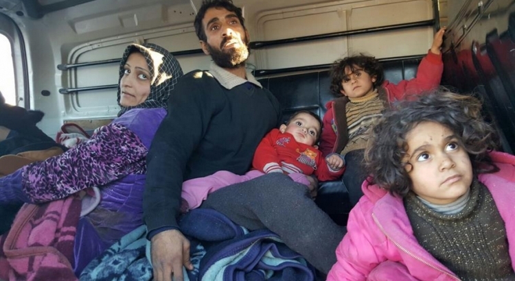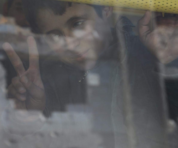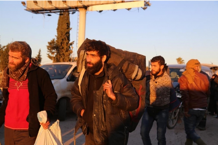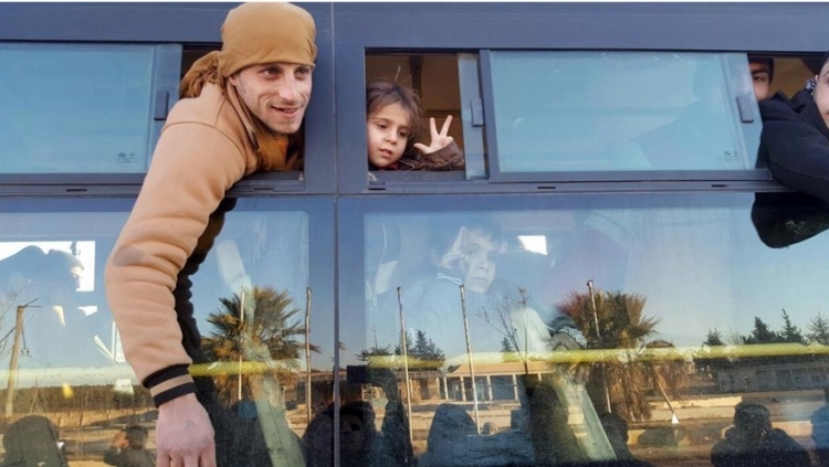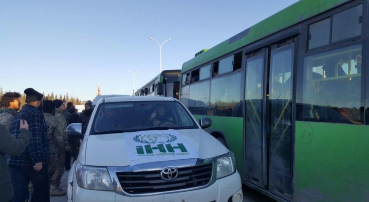 Yeşil otobüslerden oluşan konvoy, Raşidin semti üzerinden Türkiye sınırında muhaliflerin kontrolündeki İdlib iline yol alıyor.