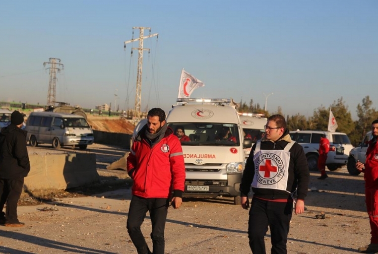 Muhaliflerin kontrolündeki kırsala giriş yapan konvoydaki yaralılara ilk müdahale yapıldı.