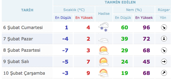 Çarşamba, Perşembe ve Cuma günü kar yağışı çok yoğun olarak etkili olacak. İstanbul, Ankara, Sakarya, Kocaeli, Bursa, Bolu, Karabük, Kastamonu, Yalova, Balıkesir, Düzce, Zonguldak, Bartın, Samsun, Eskişehir, Kütahya, Bilecek, Çankırı, Çorum, Tokat, Sivas, Kırşehir, Yozgat, Kayseri, Afyonkarahisar, Konya, Aksaray, Niğde, Karaman, Erzincan, Gümüşhane, Bayburt, Artvin, Kars, Ardahan ve Erzurum illerinde çarşamba günü yoğun kar etkili olacak.