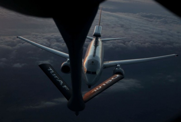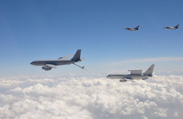 Türk Hava Kuvvetleri'nin ilk awacs uçağı havada yakıt ikmali yaparken...