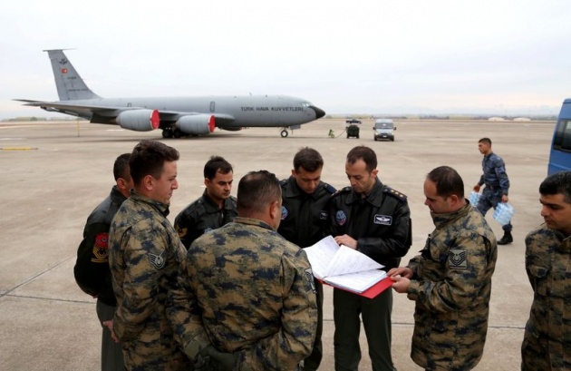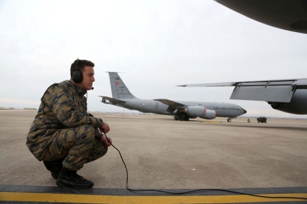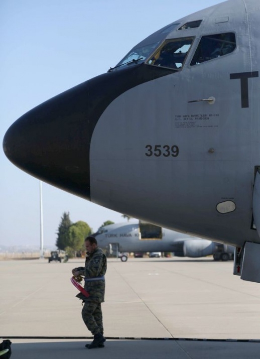 AA ekibi, İncirlik'teki 10. Tanker Üs Komutanlığı'nda konuşlu filonun havada yakıt ikmali için yaptığı hazırlıklardan havada yakıt ikmali yapılmasına kadar tüm süreçleri görüntüledi.