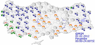 EGE: Parçalı zamanla çok bulutlu, yarın (Perşembe) sabah saatlerinde Kütahya, Uşak ve Afyonkarahisar, öğleden sonra bölge genelinin yağışlı geçeceği tahmin ediliyor. Yağışların; kıyılar ile Manisa ve Denizli çevrelerinde sağanak, iç kesimlerde kar şeklinde olması bekleniyor. Rüzgar; yarın (Perşembe) öğleden sonra Güney Ege kıyılarında güney ve güneydoğu yönlerden kuvvetli (30-50 km/sa) olarak esmesi bekleniyor. Bu gece ve yarın (Perşembe) sabah saatlerinde bölgenin kıyı kesimlerinde hafif, iç ve yüksek kesimlerinde kuvvetli olmak üzere buzlanma ve don olayı bekleniyor.