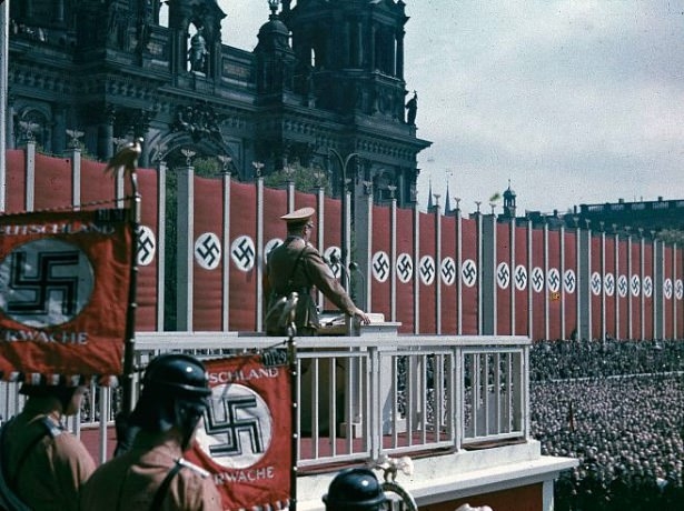 Propoganda Bakanı Joseph Goebbels halka sesleniyor, Berlin, 1938.